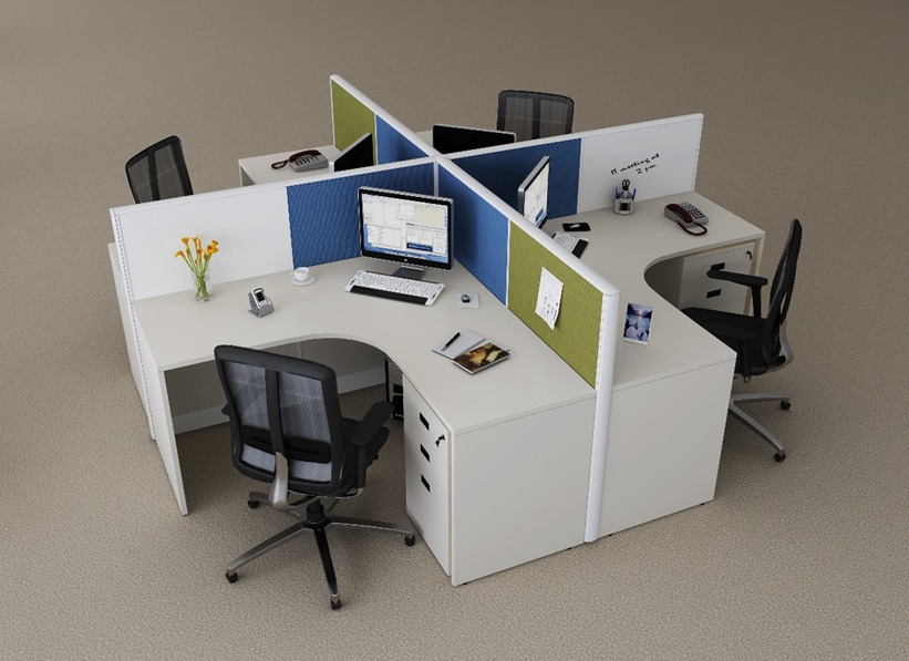 Partition based 4 seater modular Workstation, Size 1500x1500x1200mm Height with 3 drawer Pedestal each person. Colour Combination as per clinet requirement . per set price @ 128600/-